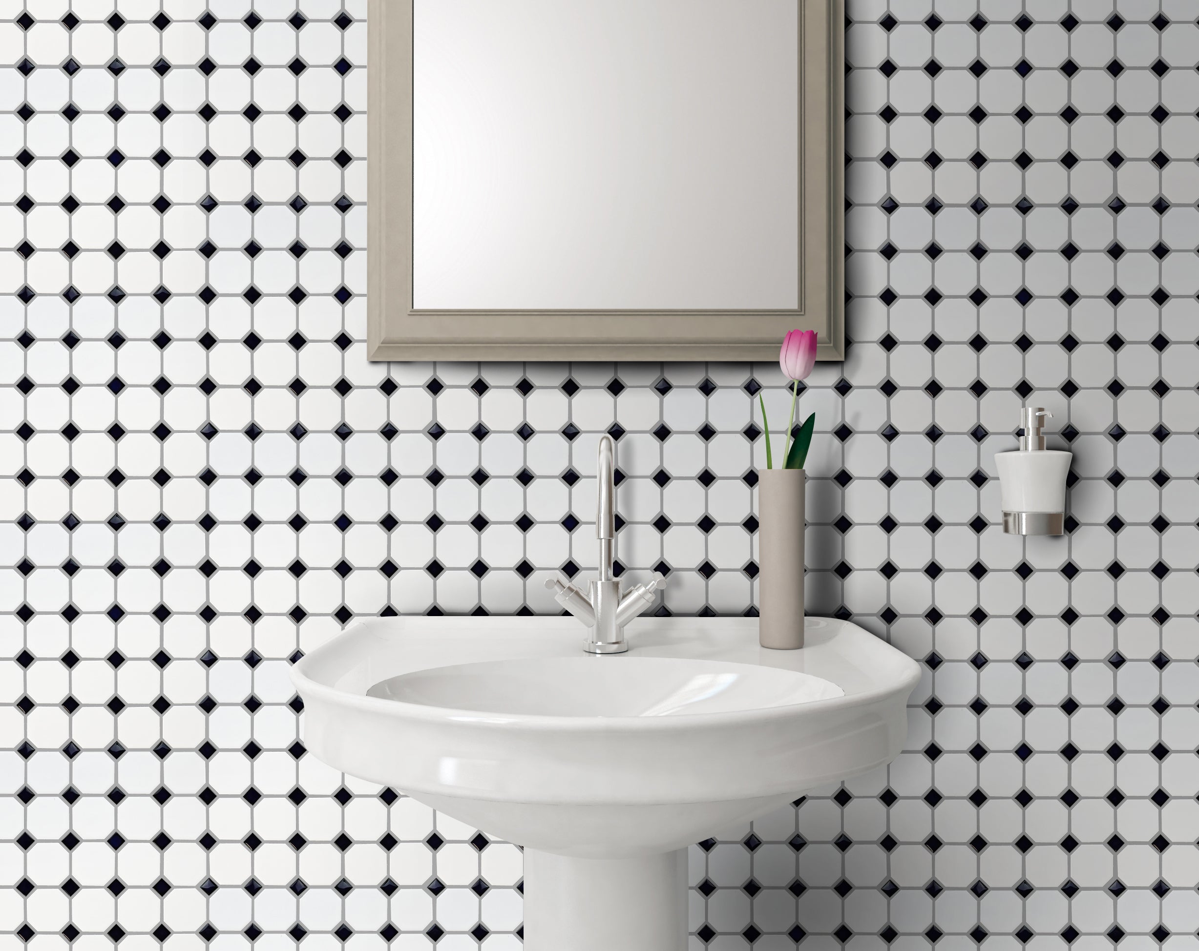 Classico | Octagon White w/Black | Octagon White w/Black | 5.5mm | White | Matte | Mosaic | Porcelain | Stock Item | AVXWHBLCLASSMOOC |