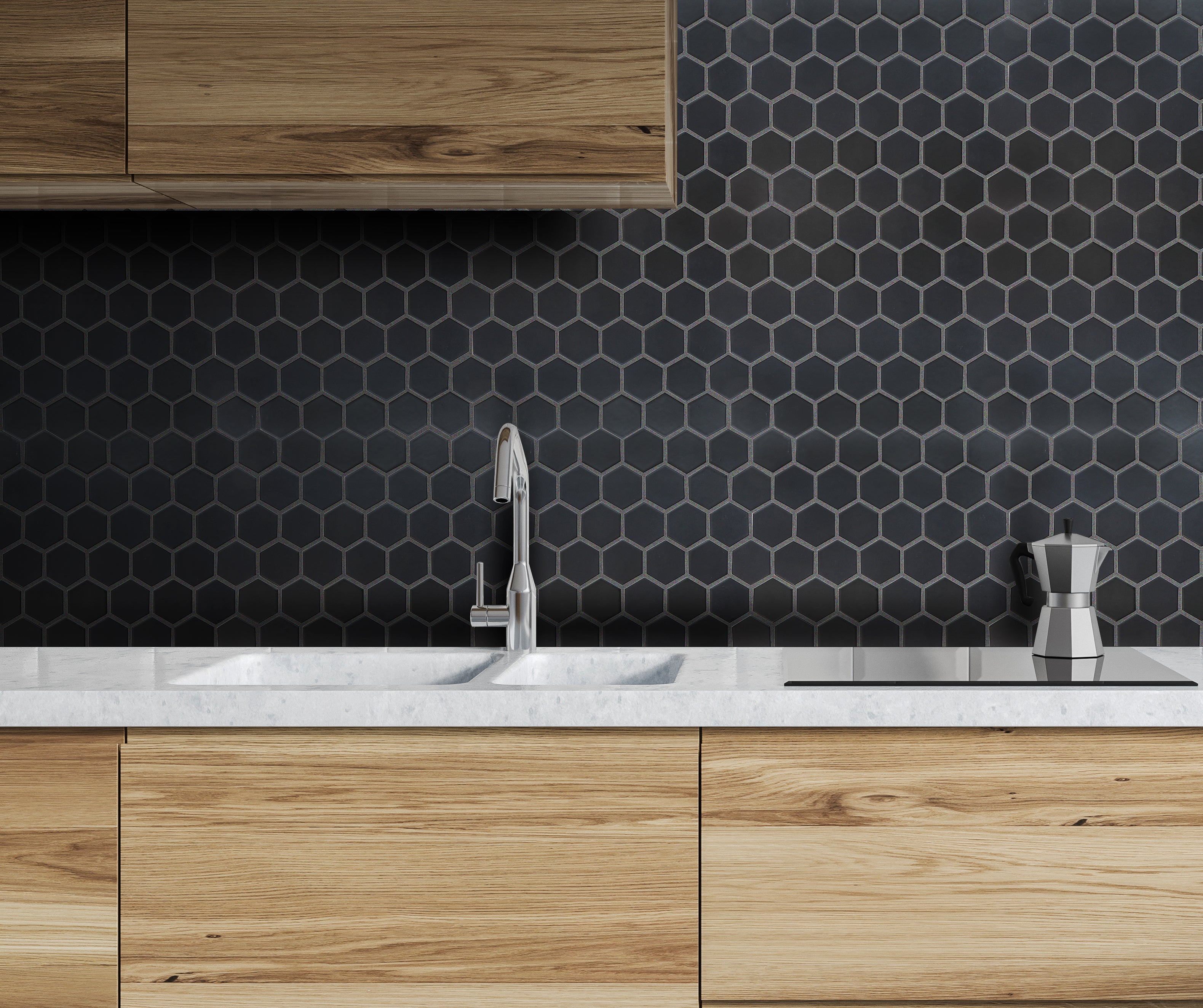 Classico | 2" Hexagon Black | 2" Hexagon Black | 5.5mm | Black | Matte | Mosaic | Porcelain | Stock Item | AVXBLMACLASSMO2H |
