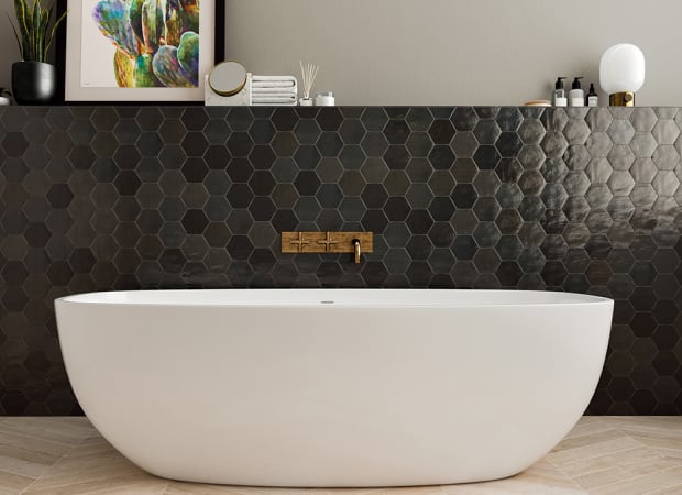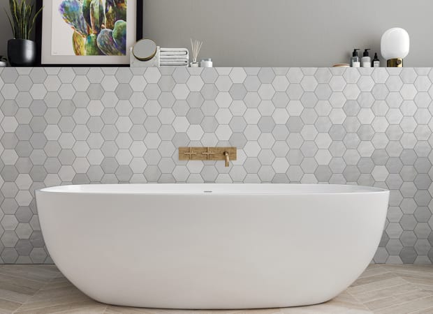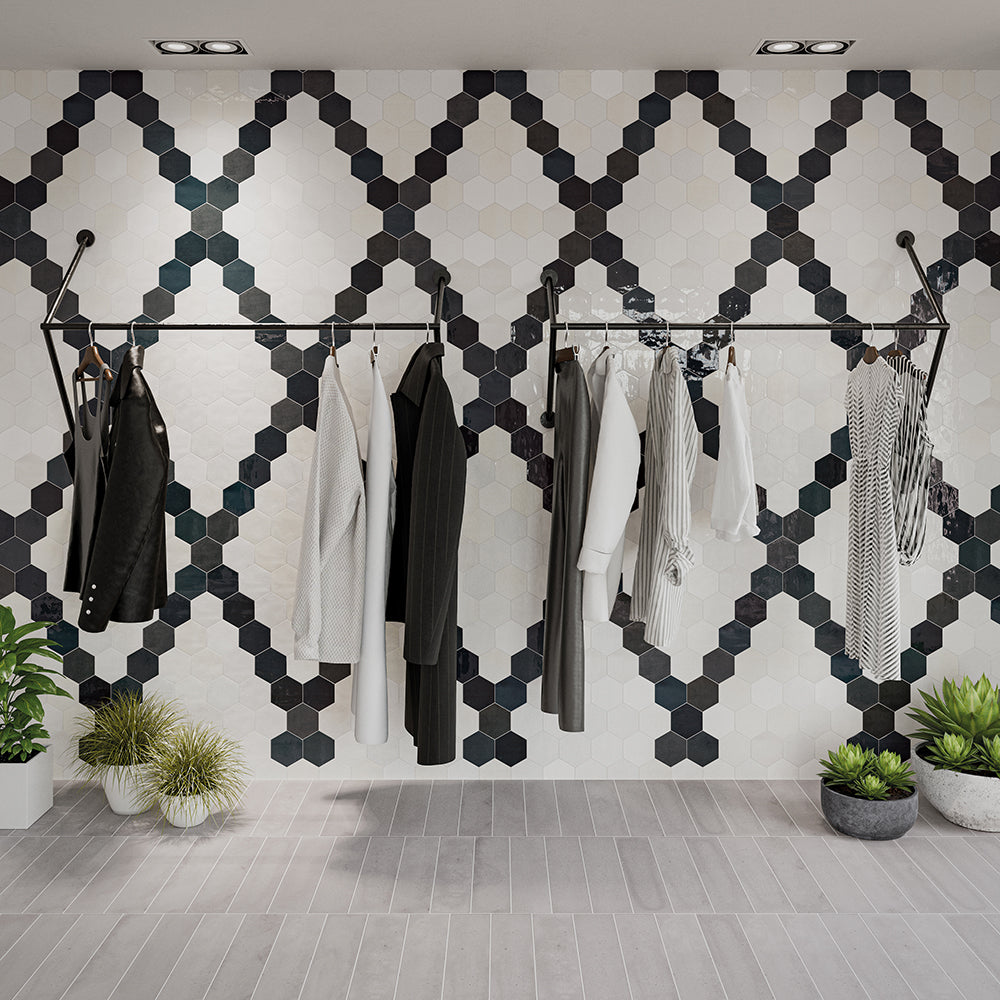 Shadow Hex | 4"x5" Hexagon | 4"x5" Hexagon | 8.5mm | Grey | Glossy | Wall | Ceramic | Stock Item | WOWGRGLSHADOHE45 |