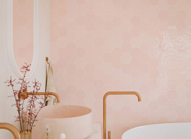 Shadow Hex | 4"x5" Hexagon | 4"x5" Hexagon | 8.5mm | Pink | Glossy | Wall | Ceramic | Special Order | WOWPIGLSHADOHE45 |