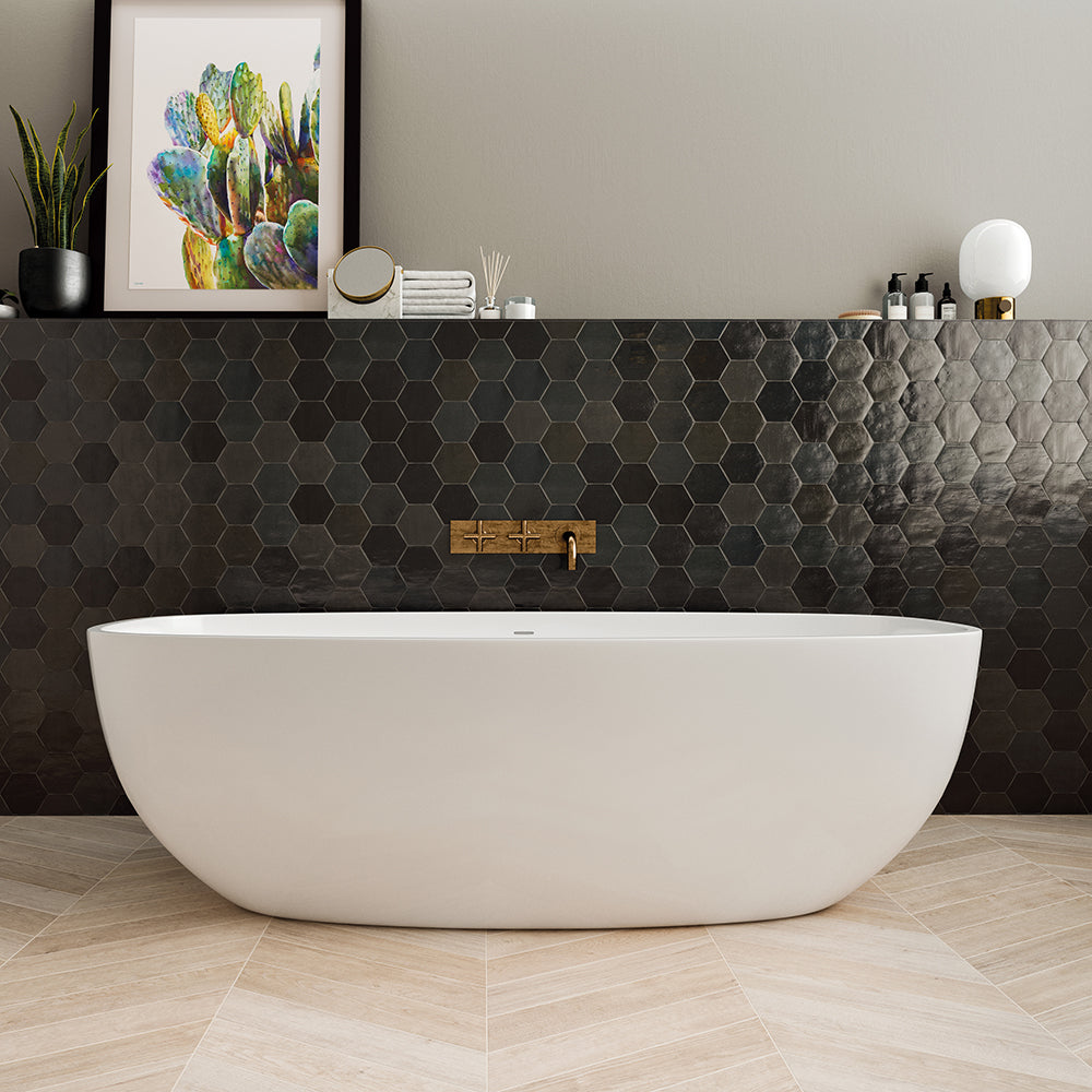 Shadow Hex | 4"x5" Hexagon | 4"x5" Hexagon | 8.5mm | White | Glossy | Wall | Ceramic | Stock Item | WOWWHGLSHADOHE45 |